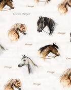 De stof is uitgevoerd in een zware katoenen kwaliteit en voelt stevig, vol en luxe aan. Dankzij de royale stofbreedte van maar liefst 280 cm kunnen de meeste gordijnen zonder of met slechts minimale naden worden gemaakt. Dat zorgt voor een rustig en professioneel eindresultaat, perfect voor grote ramen in een slaapkamer, speelkamer of woonkamer van een echte paardenfan.