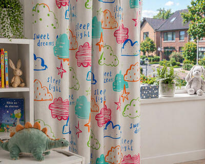 Uniek aan dit gordijn is dat het deels gemaakt is van gerecycled polyester, afkomstig van petflessen, waardoor het bijdraagt aan duurzaamheid. Ook is de wolkenprint met een waterbesparende techniek aangebracht. Kortom, het kindergordijn Sweet Dreams combineert stijl met milieubewustzijn. Wil je de isolatie nog verder verbeteren, dan kun je tijdens het bestelproces een extra voering toevoegen voor verduistering en extra isolatie tegen warmte, kou en geluid. Daarnaast bieden wij knipstaal/samples van de stof, zodat je de kleur en kwaliteit zelf kunt beoordelen voordat je bestelt. Bestel je deze vandaag, dan heb je ze meestal morgen al in huis. Mocht je vragen hebben, sta ik altijd klaar om je te helpen!