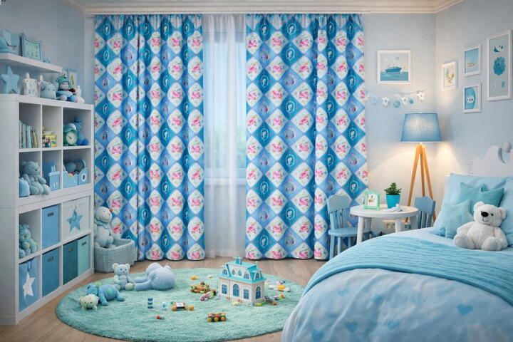 Blauwe Carreau – fris, helder en rustig. Perfect voor een lichte, fantasierijke kinderkamer.