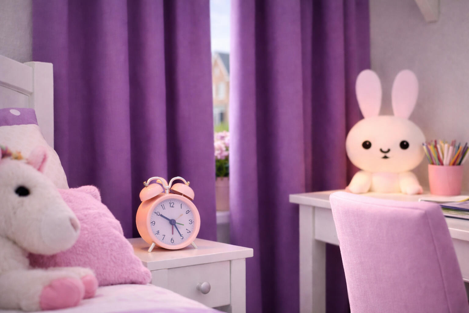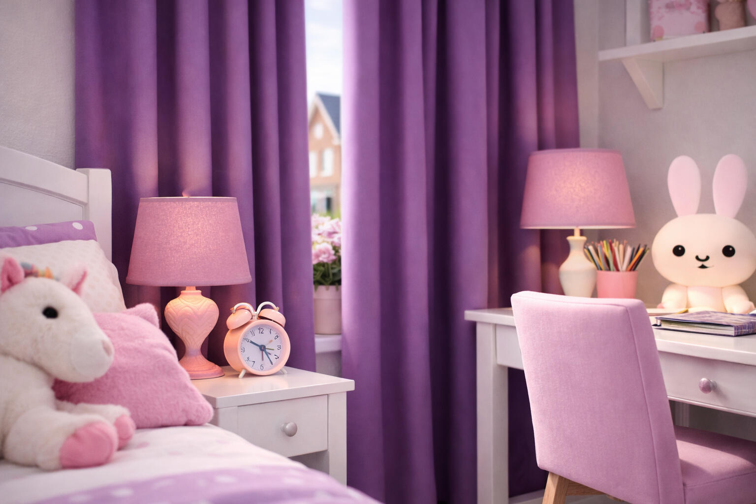 Wat als eerste opvalt, is de krachtige kleurbeleving. De blauwe uitvoering van Accent oogt fris, helder en levendig. Deze tint past prachtig in een kinderkamer met witte meubels, zachte houtaccenten en speelse accessoires zoals knuffels, speelgoedauto’s, een bureaulamp en kleurrijke potloden. Het blauw geeft de ruimte een vrolijke en opgeruimde uitstraling en vormt een mooie basis voor een stoerdere of juist frisse kamerinrichting. De paarse variant heeft een zachter en warmer karakter. In combinatie met roze details, een lieve knuffel, een nachtlampje en lichte meubels ontstaat een rustige en geborgen sfeer die heel mooi past in een slaapkamer voor kinderen.