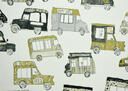 Een autootjes gordijn, maar niet zo maar auto’s: het zijn héérlijke klassieke ijscowagens! De bel klinkt, de ijscoman rijdt door de straat. Daar word je toch vrolijk van? De wagentjes zijn 10 cm groot en gedrukt op stevig geweven, matte katoen. De ondergrondkleur is fraai kiezelgrijs, de gebruikte tinten mooi poederig van kleur. Dat geeft nog even extra dat nostalgische effect. De wafelijsjes en hoorntjes zijn op jouw slaapkamer natuurlijk ‘ijskoude dé beste!’