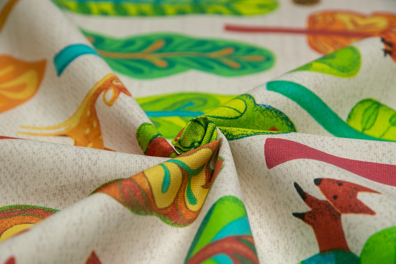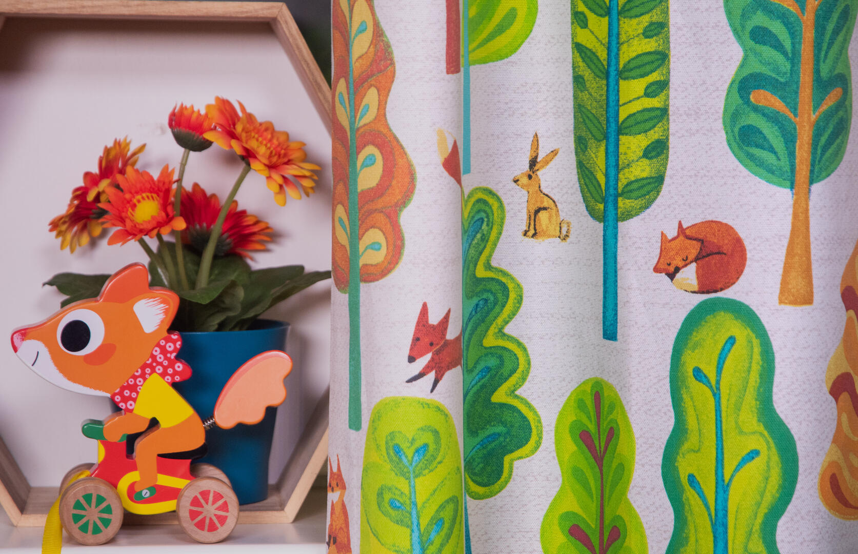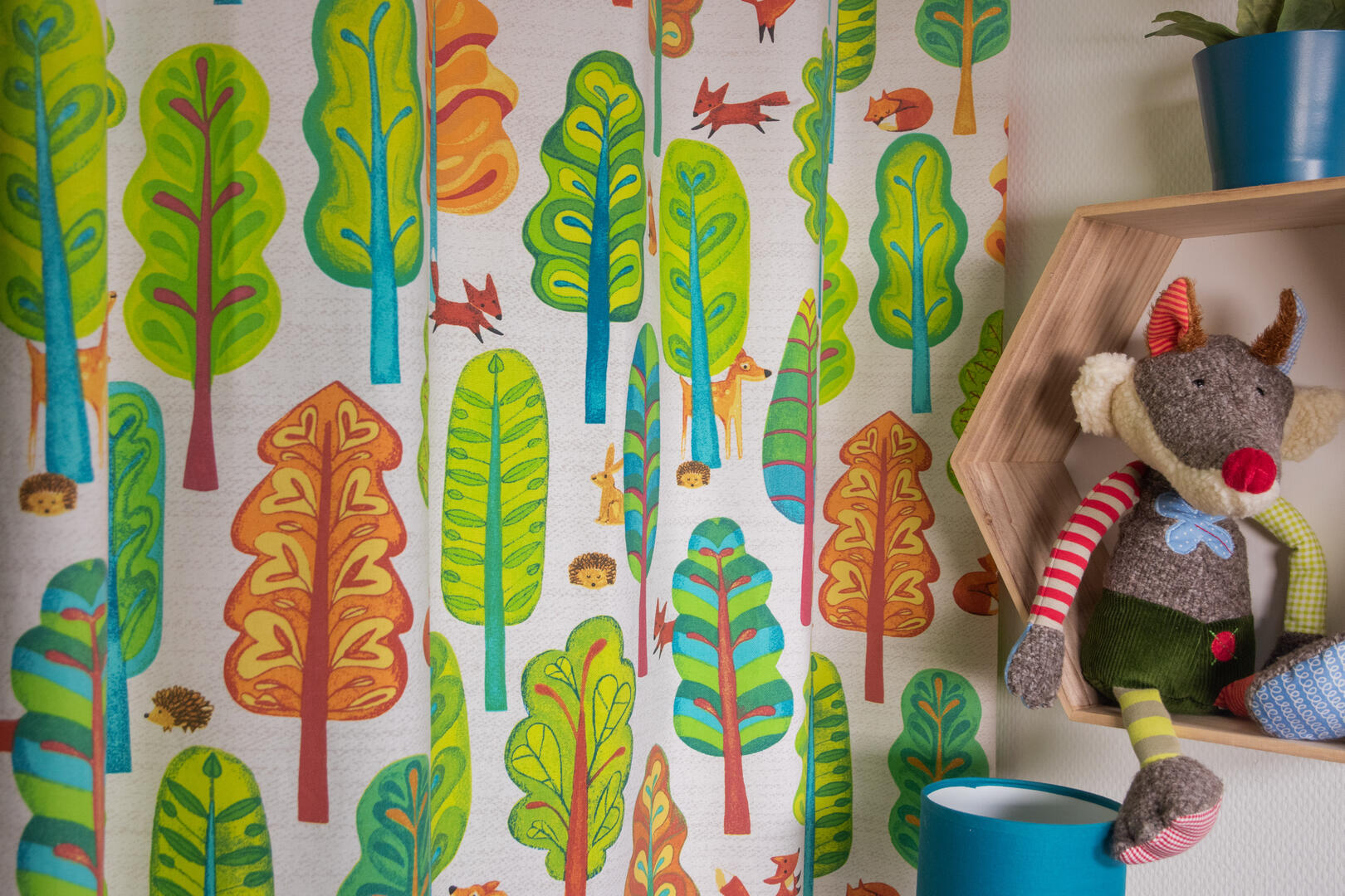 Deze gordijnstof met de naam Funky Forest is gemaakt van de beste materialen waardoor het gordijn mooi in de plooi valt.