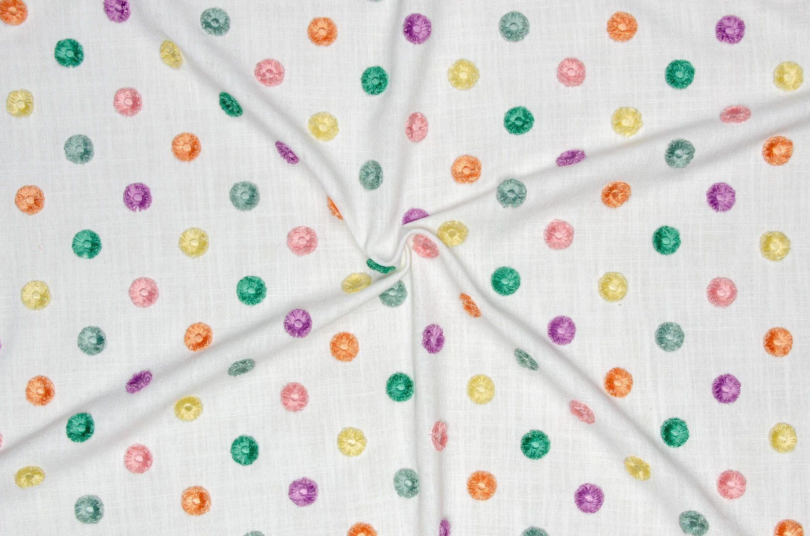 Deze gordijnstof met de naam Pom Pom is gemaakt van de beste materialen waardoor het gordijn mooi in de plooi valt.