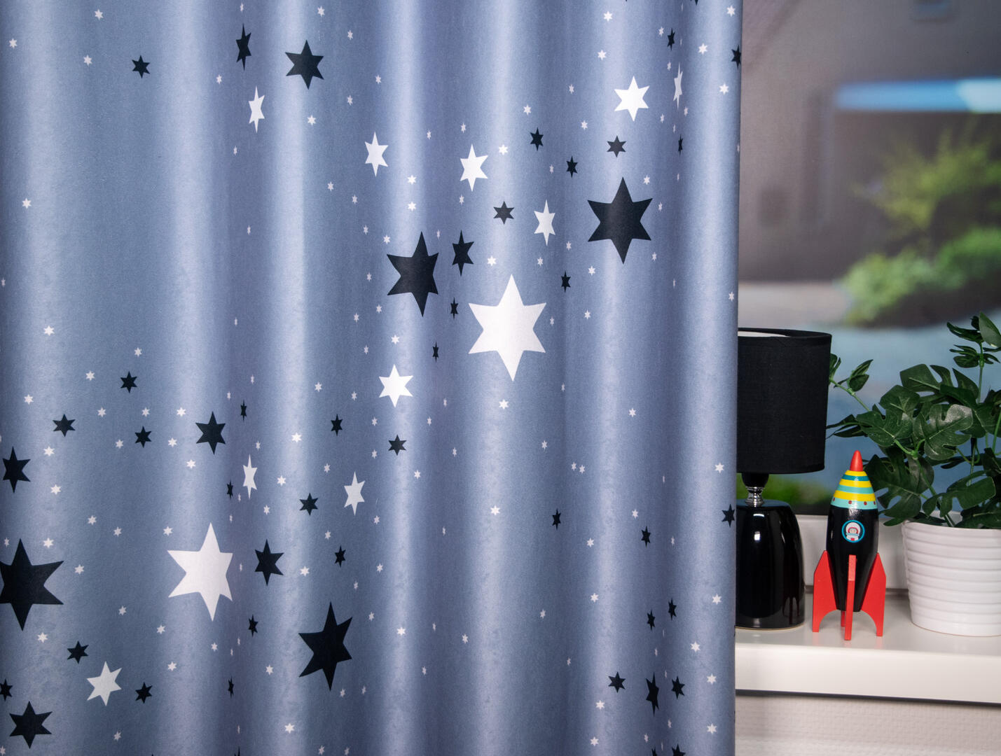 De Celestial Stars is gemaakt van fluweelzachte velvet stof, waardoor het niet alleen prachtig oogt, maar ook heerlijk aanvoelt. Met zijn succesvolle kleurstellingen zal dit gordijn een echte blikvanger zijn in de kinderkamer. Kies uit vier kleurrijke combinaties: marineblauw met lichtblauwe en witte sterren, grijs met lichtgrijze en zwarte sterren, ecru met paarsvioletkleurige sterren en antraciet met paarsvioletkleurige sterren. Deze kleuren zullen de ruimte laten stralen!