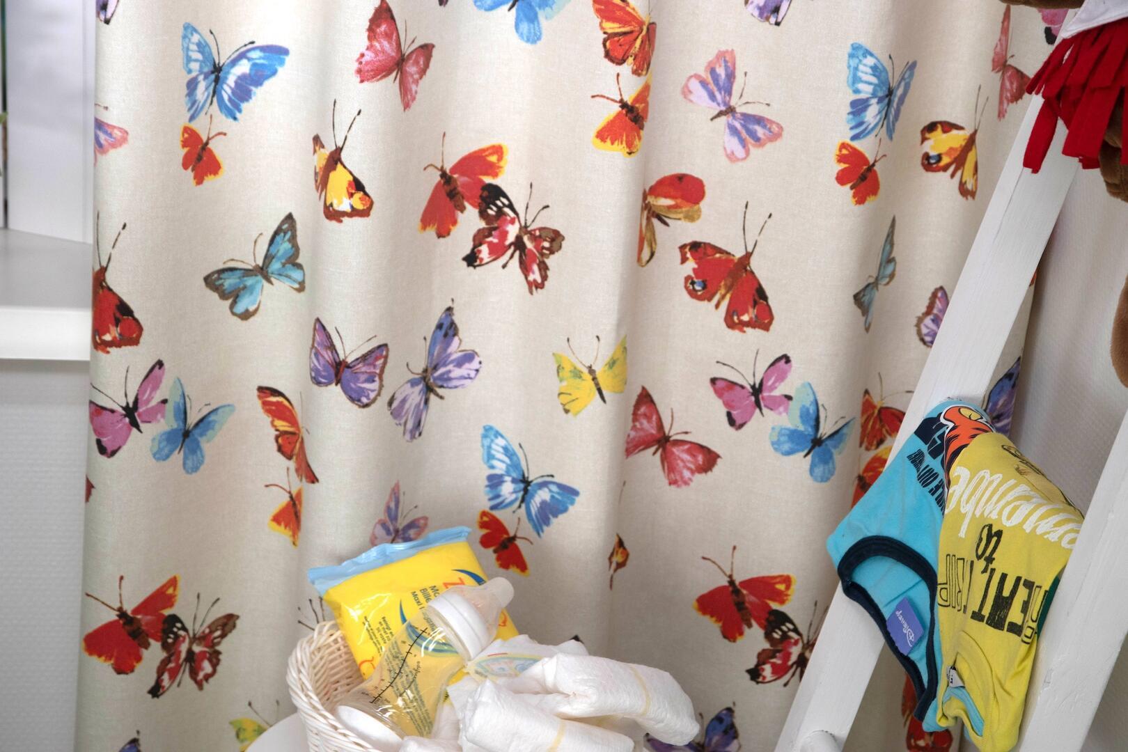 De Atalanta gordijnen zijn een perfecte combinatie van betaalbaarheid en uitzonderlijke kwaliteit. Breng een sprankeling van vreugde in de kinderkamer met deze prachtige kindergordijnen! Met zijn schitterende gekleurde vlinders zorgt dit gordijn ervoor dat uw kinderen elke dag vrolijk wakker worden. Om het meest magische effect te creëren, raden we aan om deze stof te laten voeren tot een verduisterend gordijn. Op die manier kunnen uw kinderen genieten van een goede nachtrust en is de kamer op elk gewenst moment sfeervol te verduisteren.