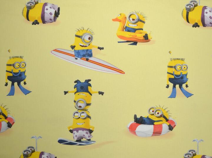 Wie had gedacht dat de uiterst geliefde Minions uit de ‘Despicable Me-films, hun eigen film zouden krijgen? De gele wezentjes blijken immens populair! Niet alleen een eigen film, maar ook als knuffel, kussens en andere gadgets zijn zij super favoriet! Nu ook bij KinderGordijnen.nl échte Minions gordijnen verkrijgbaar. Op dit gordijn zijn ze 16 cm groot en gedrukt op gladde, matte katoen. Van peuter tot tiener, iedereen is dol op deze lollige wezentjes.