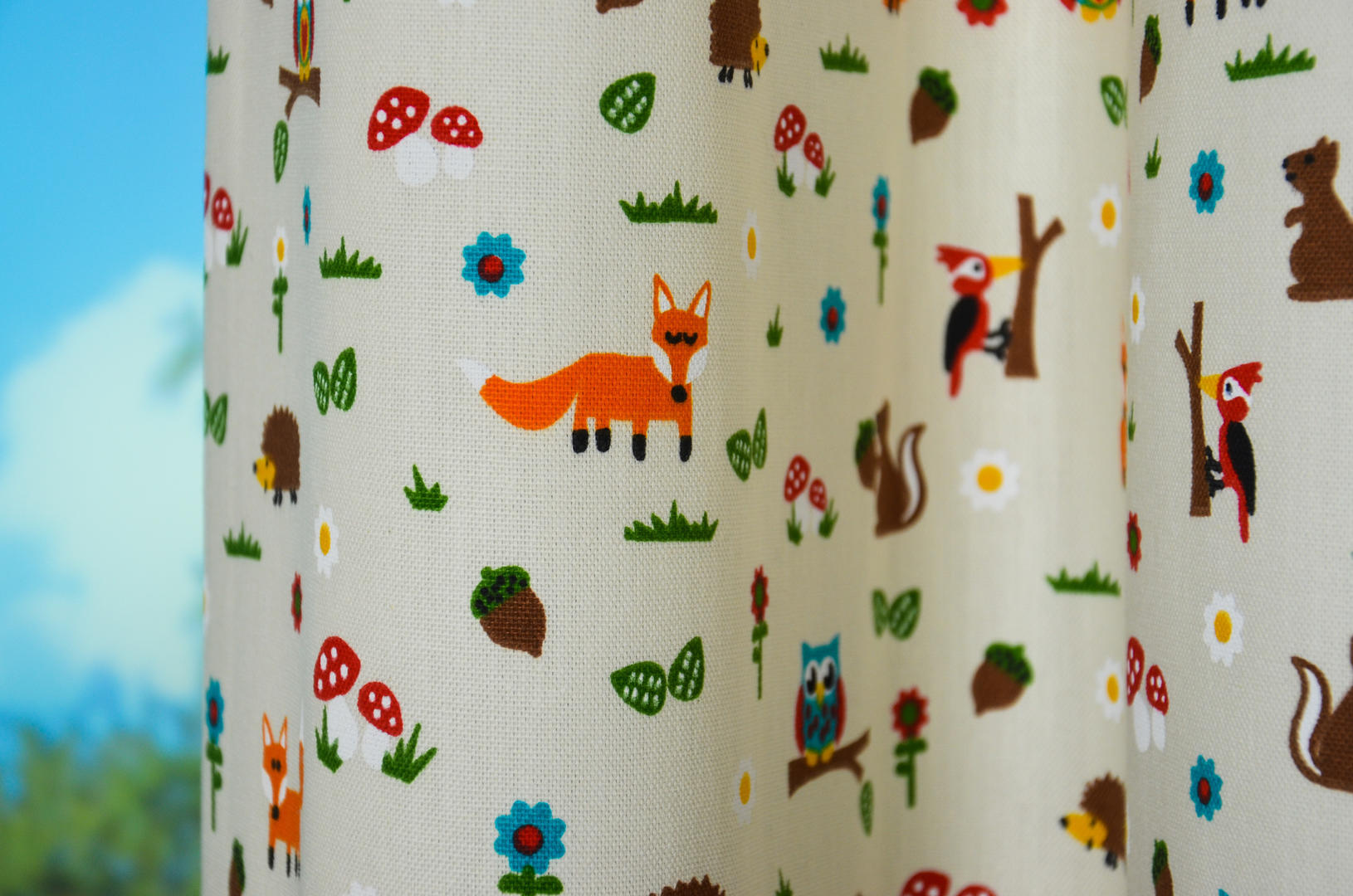 Het kindergordijn Forest Life is een vrolijk en retro gordijn, verkrijgbaar in 3 verschillende kleuren: roomwit, kastanjekleurig en canvas. kastanjekleurig. De nostalgische figuurtjes zijn gedrukt op een mooie, matte kwaliteit stof en hebben een afmeting van ongeveer 3 cm. Dit gordijn brengt de sfeer van vroeger terug in de kinderkamer, denk aan gezelligheid en knusheid zoals in grootmoeders tijd.