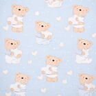 Het Babybear motief bestaat uit schattige teddybeertjes van circa 22 cm hoog, elk met een eigen houding en expressie. De beertjes houden kleine hartjes vast en worden omringd door sterretjes en wolkachtige vormen. Dit zorgt voor een speels patroon dat niet overheerst, maar juist warmte en geborgenheid uitstraalt.