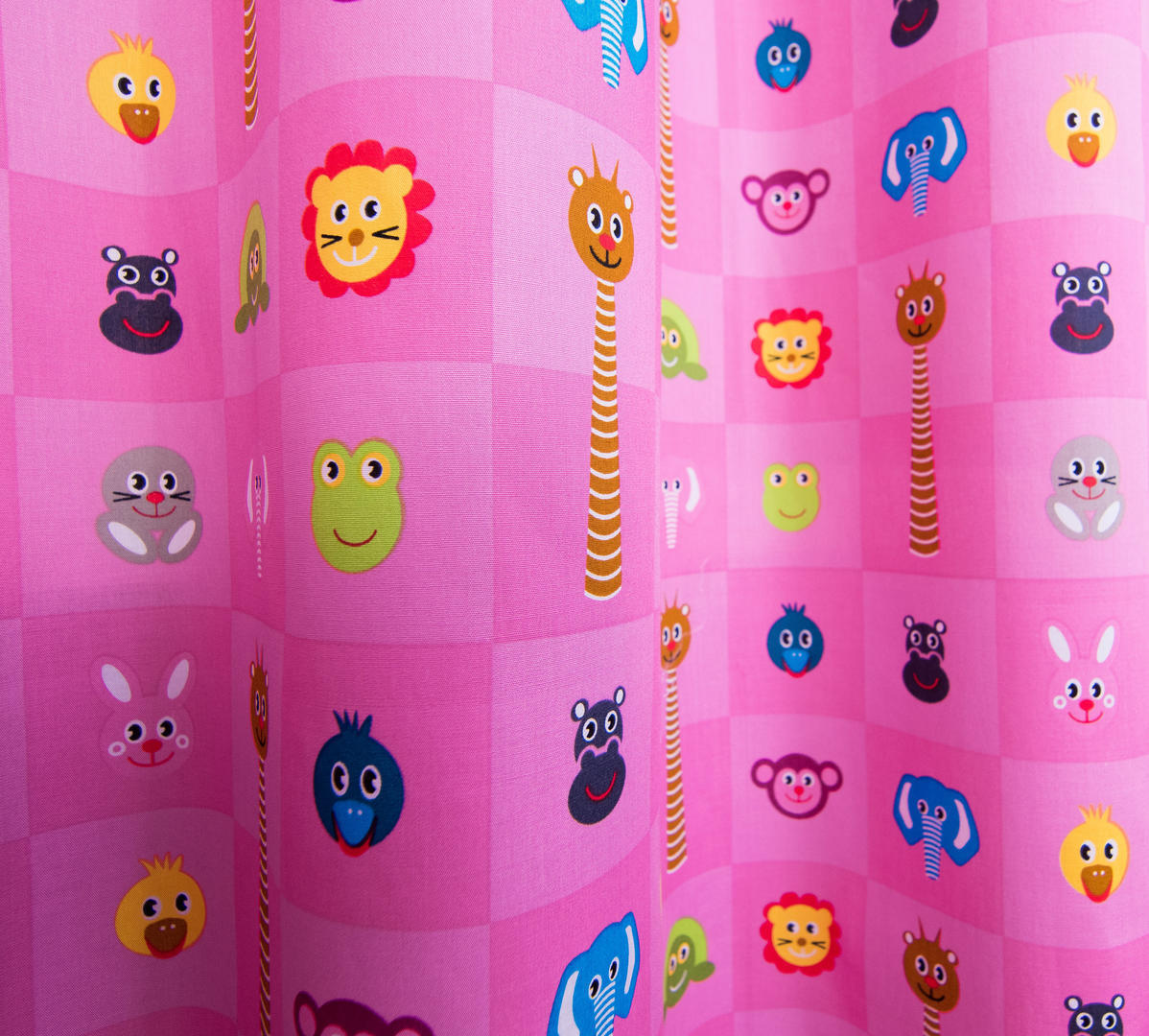 Wat een vrolijke dieren kijken naar jou! Het lijkt bijna alsof zij willen zeggen: Welkom op je slaapkamer. De beestjes zijn gedrukt in de vierkanten van 6 x 6 cm. De turquoise kleur kan zowel voor de meisjes- als jongenskamer. Ook leverbaar in drie andere vrolijke kleuren, allemaal even sprankelend en lief. Ook leverbaar als vouwgordijn. Voor extra functionaliteit zoals isolatie en verduistering, kun je tijdens het bestelproces kiezen voor de optie "Voering". De voering zorgt ervoor dat je kamer in de wintermaanden lekker warm blijft en in de zomer juist koel. Bovendien dempt de voering geluid en beschermt het gordijn tegen verkleuring door zonlicht.