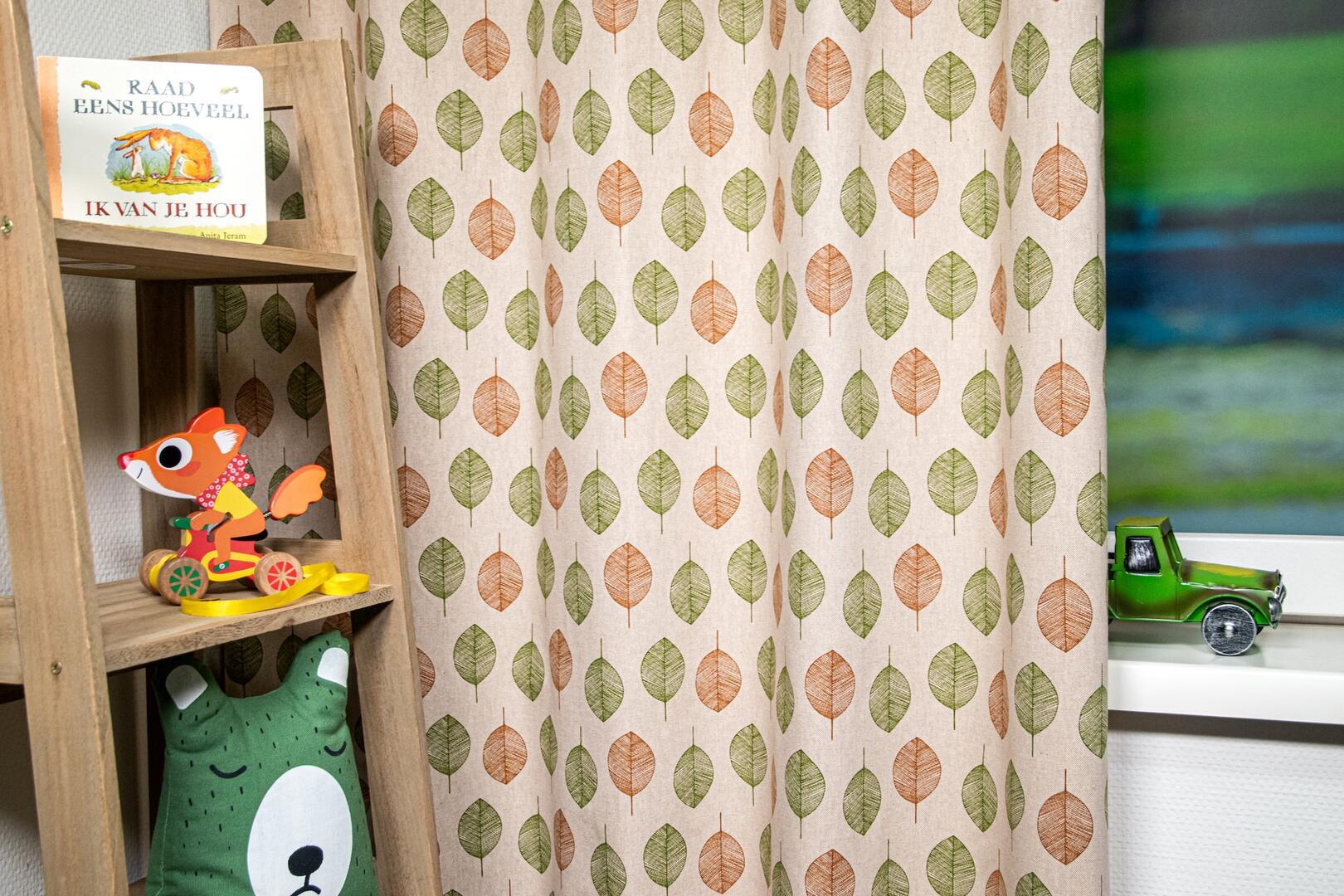 De Betula is een prachtig overgordijn, met zijn frisse bladmotief op een canvaskleurige stof. De gordijstof is beschikbaar in twee kleurcombinaties - het levendige Spring met twee tinten groen en het warme Autumn met groen en bruin blad - past dit gordijn perfect in kinderkamers, woonkamers, woonkeukens en slaapkamers. Voor extra functionaliteit en comfort bieden we de optie om voering toe te voegen.
