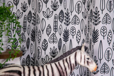 Hoe leuk is dit! zelf met textielstiften je eigen gordijn inkleuren. De bladeren zijn ± 10cm groot. Hoeveel bladeren kleur jij op dit bijzondere kindergordijn?