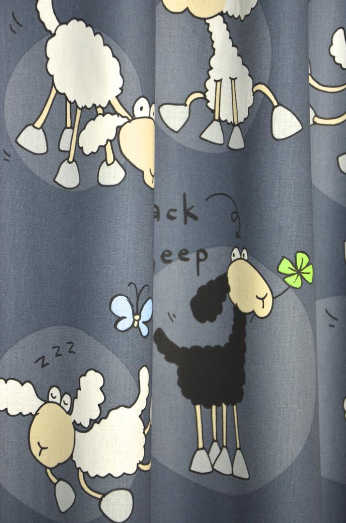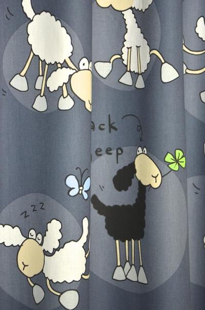 Op dit gordijn staan zoveel witte en zwarte schaapjes afgebeeld dat uw kinderen al in slaap vallen voordat ze allemaal geteld zijn. Door de donkere kleur van het gordijn creeërt u direct een knusse sfeer in de kinderkamer.