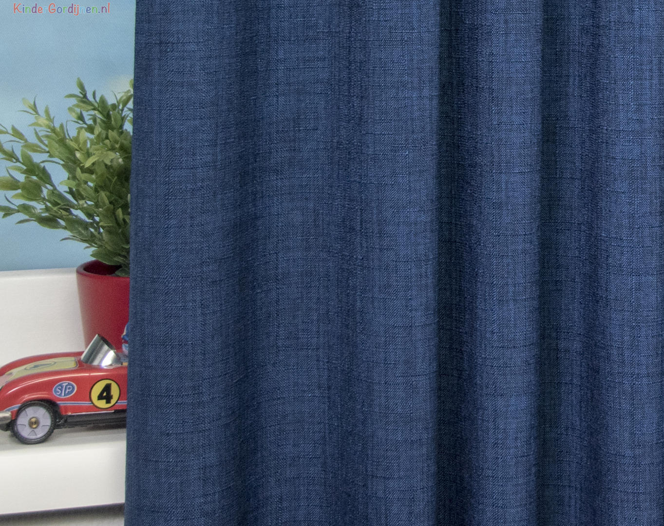 We laten hier het mooie kindergordijn Elect zien. Deze soepele en hoogwaardige kamerhoge effen gordijnstof creëert een sfeer van rust in de kinderkamer. Geweven met garens van onregelmatige dikte, zorgt de stof voor een prachtige en unieke uitstraling. Met de kamerhoge eigenschap van de Elect stof, zijn er geen naden in de gordijnen zichtbaar. Dit zorgt voor een naadloze en strakke afwerking, waardoor de gordijnen er perfect uitzien. Houd er wel rekening mee dat de lengte van de gordijnen beperkt is tot 260cm vanwege de kamerhoogte. Het Elect kindergordijn is verkrijgbaar in twee prachtige kleuren: mint en donkerblauw.