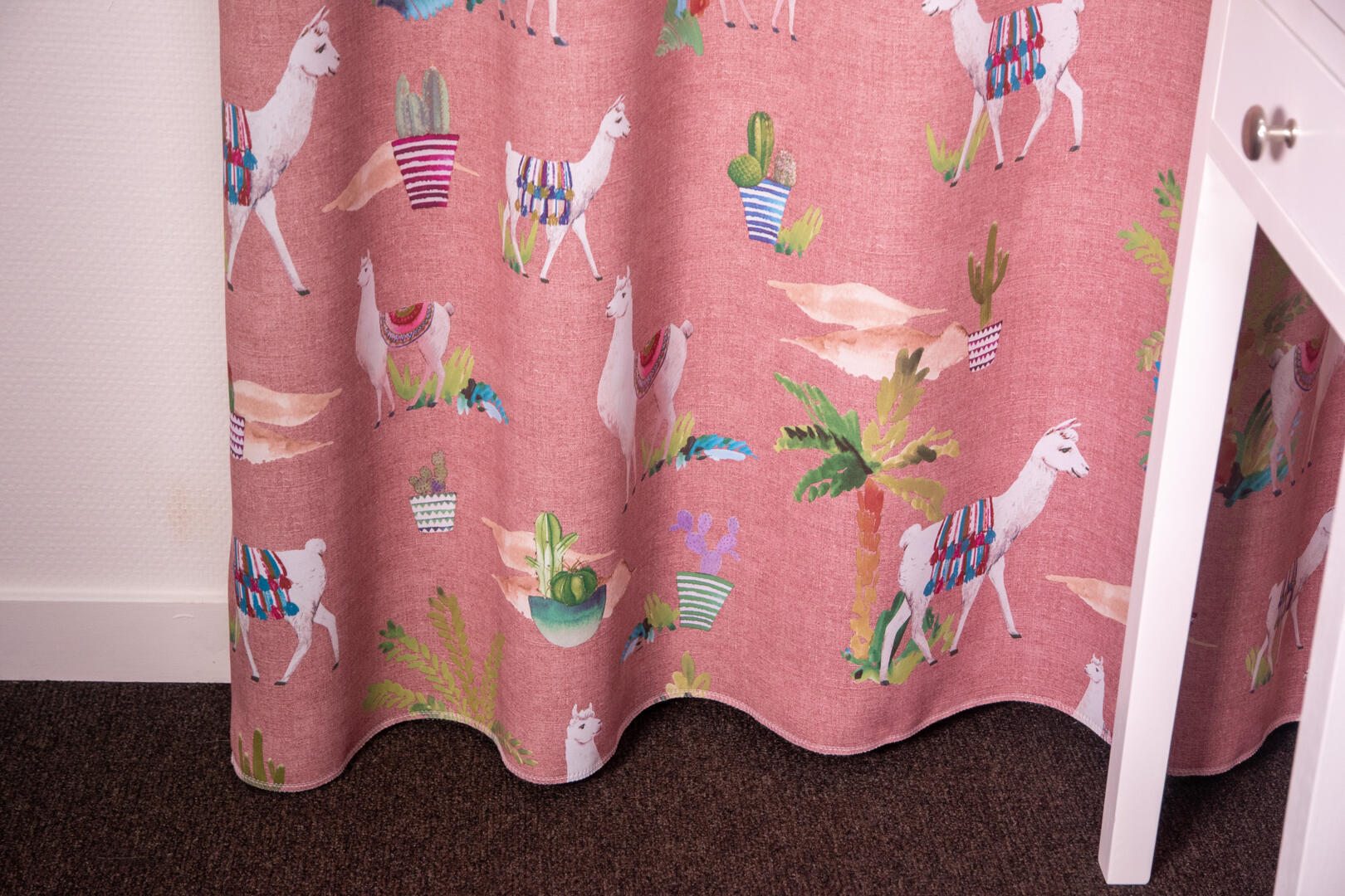 Naast de leuke print heeft het kindergordijn Lama ook praktische eigenschappen. De stof is namelijk semi-verduisterend, waardoor het een goede optie is om de kamer van je kind gedeeltelijk te verduisteren. Zwarte draden zijn verwerkt tussen de voor- en achterkant van de stof, wat zorgt voor extra verduistering. Op deze manier kan je kind genieten van een rustige en comfortabele slaapomgeving, zelfs als het buiten nog licht is. Als je benieuwd bent naar hoe de stof er in het echt uitziet, bieden we de mogelijkheid om een knipstaal te bestellen. Op die manier kun je de stof voelen, de kleuren bekijken en ervaren hoe het past in de kinderkamer. Zo kun je een weloverwogen beslissing nemen en het perfecte kindergordijn kiezen.