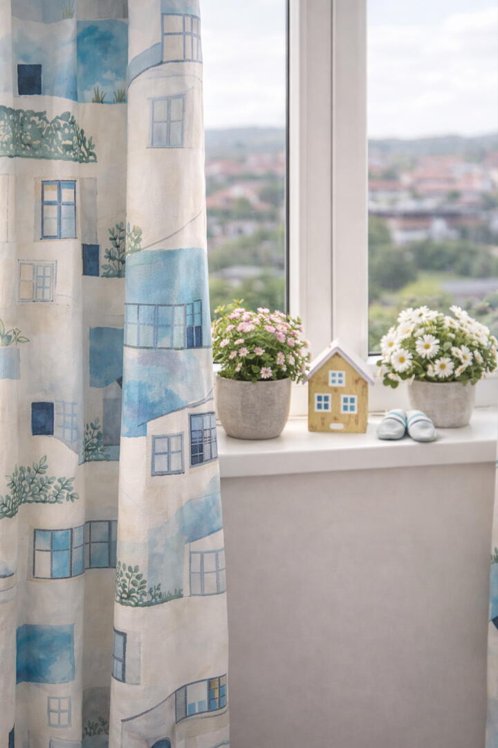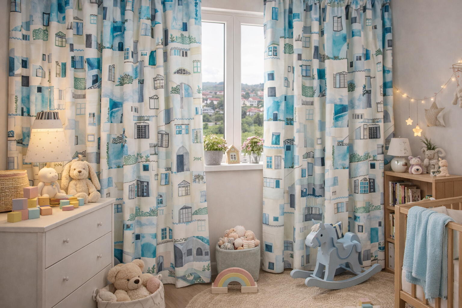 Dit kindergordijn brengt het stedelijke aanzicht van een charmante Zuid-Europese stad tot leven, waardoor een speels en avontuurlijk gevoel ontstaat in de kinderkamer. Laat de kinderen wegdromen terwijl ze omringd worden door de magie en het karakter van deze prachtige stijl.
