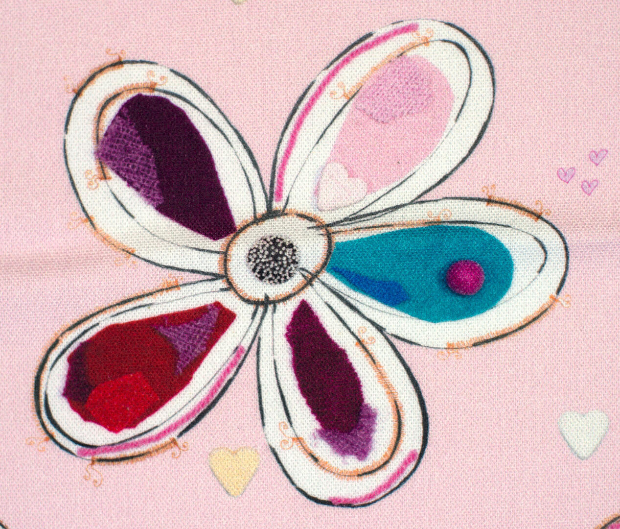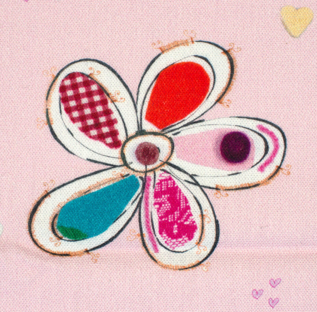 Een súper schattig bloemetjes voor de meisjeskamer, ontworpen door Hanneke de Jager. Deze beeldend kunstenares is schrijver en tevens illustrator van een aantal bijzonder leuke kinderboeken. Zij omschrijft haar stijl als: “Fris, kleurrijk, levendig, speels en zonnig.” Door gebruik van verschillende materialen zoals stofjes van de markt, knopen en gebreide truien, geeft zij haar illustraties iets unieks. In het patroon zie je namelijk de weergave van die leuke details van de verschillende texturen. Zo heeft de ondergrond een haast realistisch aaibaar brei-effect! Dat geeft direct een véél knusser effect bij harde materialen (b.v. laminaat/ gestucte wanden)