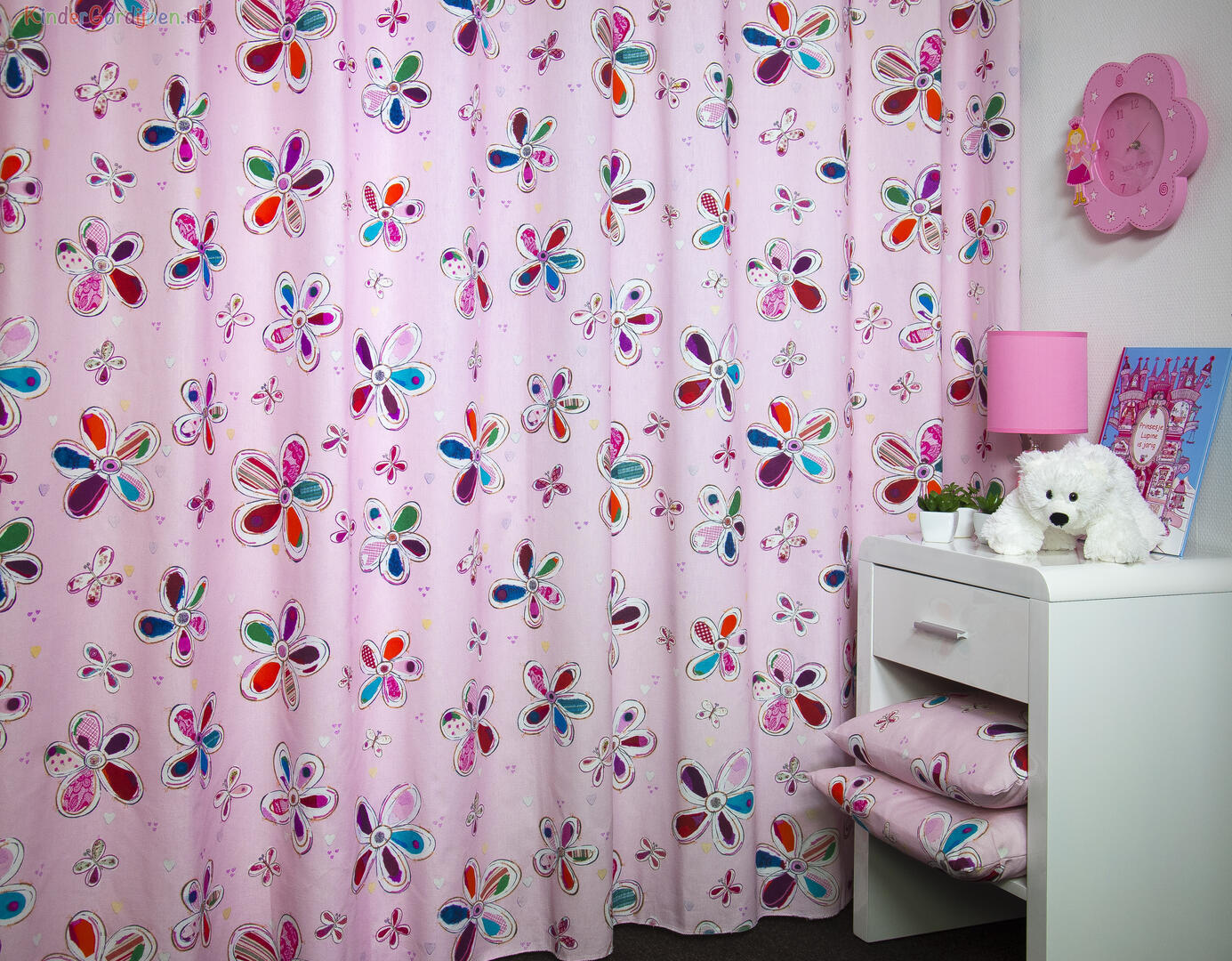 Het stylen van de kinderkamer is geweldig leuk om te doen en hoe bijzonder is het om een gordijn van een échte ontwerpster te hebben! De stof is mat en soepel vallend en de print aan de voorzijde gedrukt. Als je goed kijkt zie je die kenmerkende ‘Hanneke’ details, een klein opgestikt knoopje, een zig-zag steekje en andere speciale “kantjes & randjes.” Zij tekent hele mooie prinsessen boeken en in die sfeer is dit gordijn ontworpen. Wil je ook nog lekker donker slapen, dan kan het kindergordijn verduisterend worden gevoerd. Kortom, wil jouw eigen hartendief op een bijzondere manier naar dromenland? Geef je eigen prinsesje dan een fantasierijk Hanneke de Jager kindergordijn!