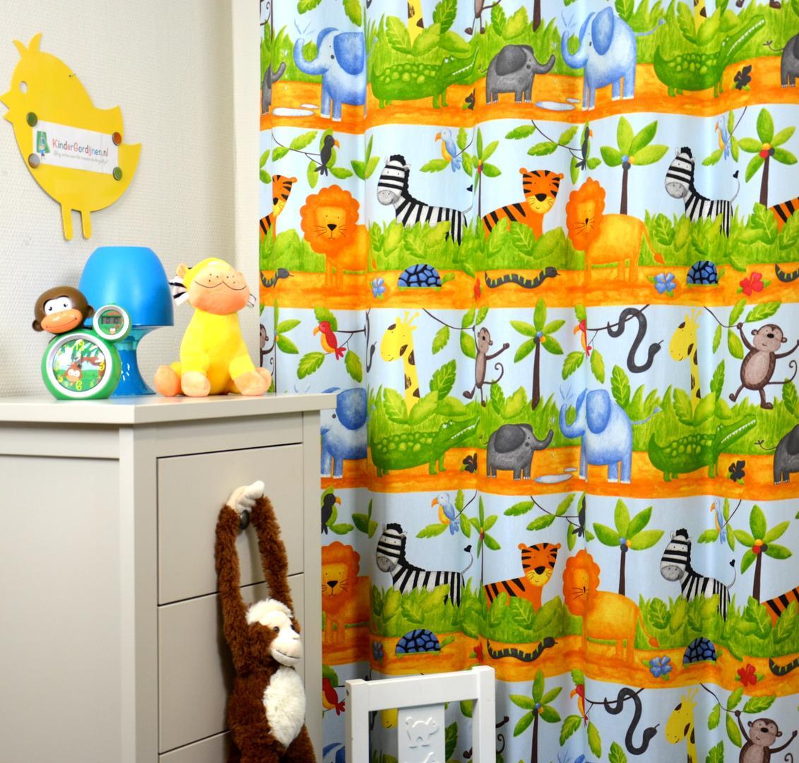 Dieren van over de hele wereld stappen, kruipen en zwemmen de kinderkamer in. Durft uw (klein)kind te slapen in deze speelse dierenjungle? De tekeningen op dit gordijn zijn gedetailleerd en kleurrijk, waardoor het elke kinderkamer opvrolijkt.
