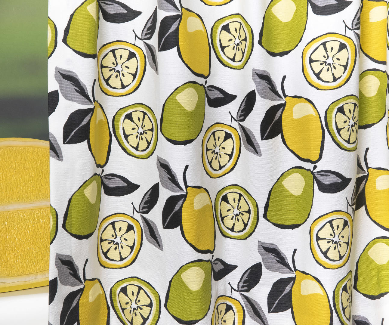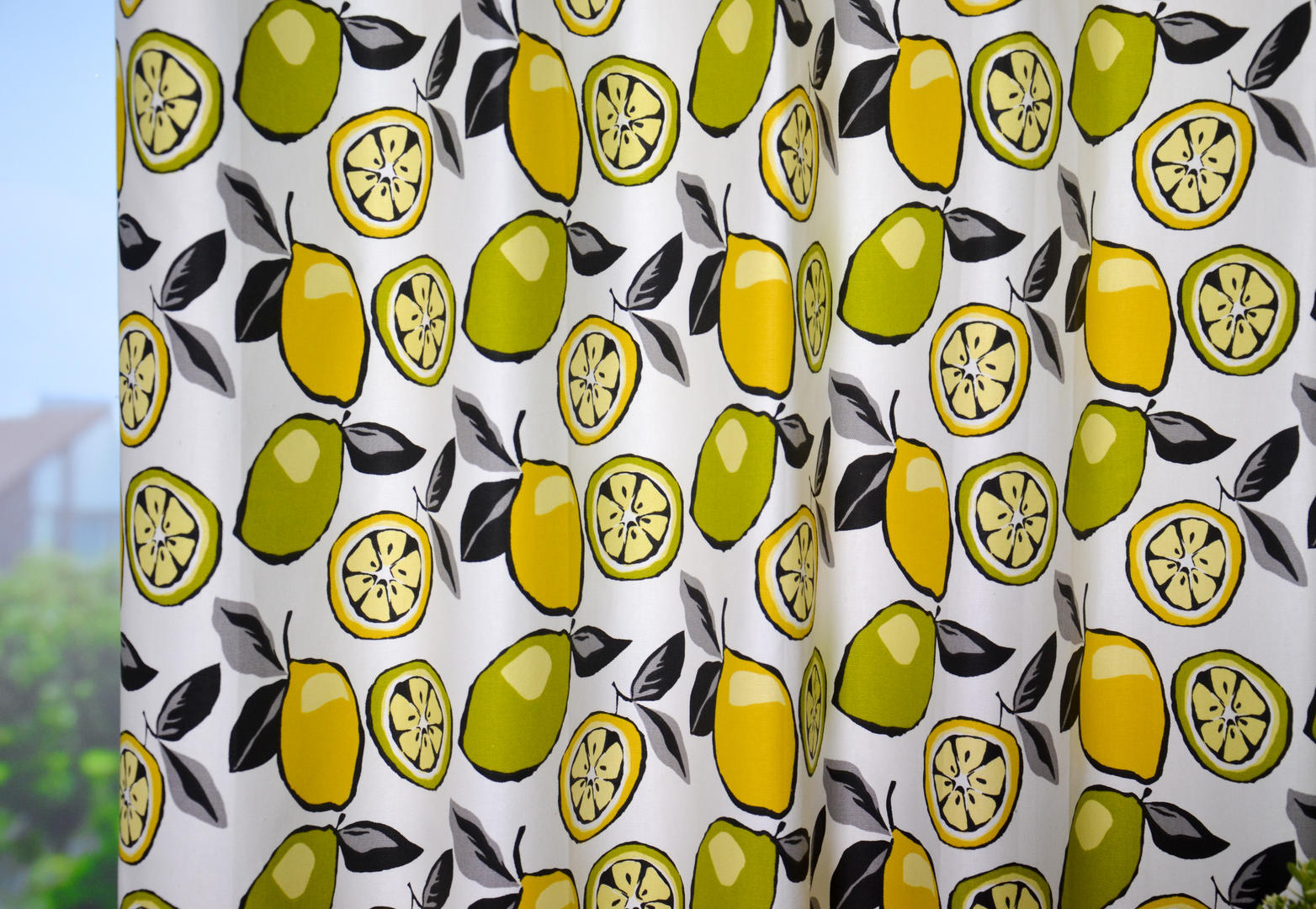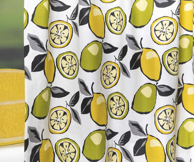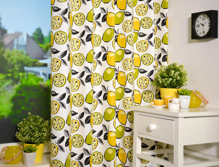 Deze gordijnstof met de naam Citrus is gemaakt van de beste materialen waardoor het gordijn mooi in de plooi valt.