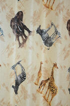 Een gordijn zó vanuit de Savanne! Rond de evenaar is het lekker warm en die gezellige warmte straalt dit gordijn ook uit. De camel kleurige ondergrond, is bedrukt met subtiele bomen en grassen op de achtergrond. Het patroon is royaal en stoer getekend, de olifant is wel 30 cm groot! Doordat de stof niet al te zwaar geweven is, kun je het patroon aan de achterzijde ook aardig zien. Wil je aangenaam donker slapen, dan kun je natuurlijk het Daktari gordijn laten voeren. Dan wordt de achtergrond egaal wit van kleur. Ga je mee op Safari?