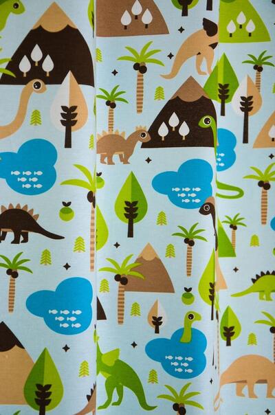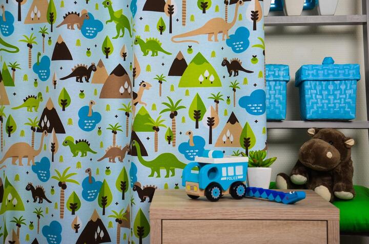 Deze gordijnstof met de naam DinoWorld is gemaakt van de beste materialen waardoor het gordijn mooi in de plooi valt.