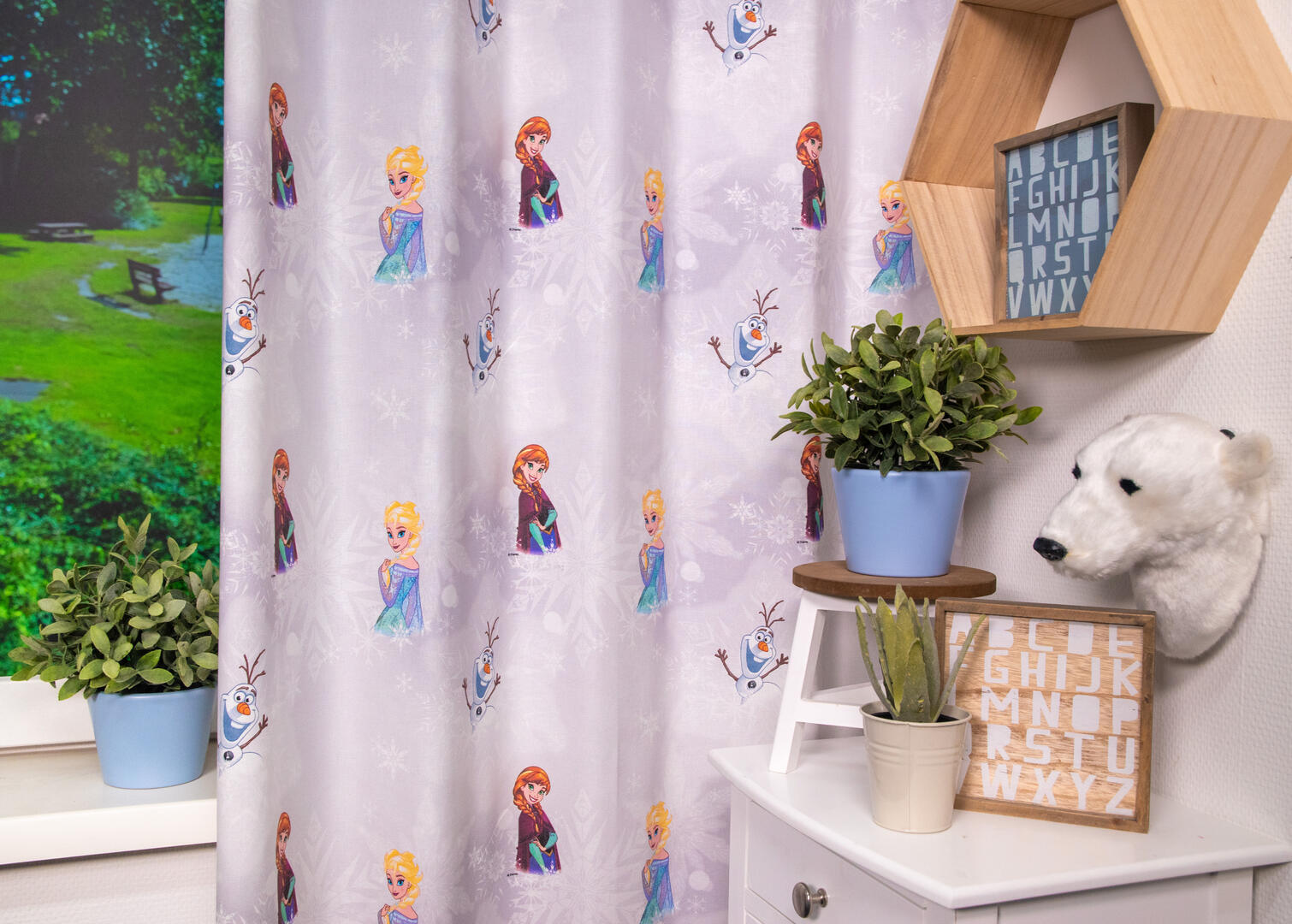 Dit prachtige kindergordijn, met daarop Elsa, Olaf en Anna is perfect voor iedere kinderkamer. Deze gordijnstof met de naam 'Elsa the Snow Queen' is gemaakt van katoen waardoor het gordijn mooi in de plooi valt. Laat voor een aangename verduistering van de kamer de gordijnen voeren: een verschil van dag en nacht.