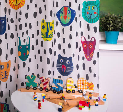 Ontdek het schattige kindergordijn Face Drops, het kindergordijn dat de slaapkamer omtovert tot een speels paradijs! Op een zachte, witte achtergrond prijken schattige dierenhoofden tussen grote, onregelmatige zwarte stippen. Voor een goede nachtrust kan het gordijn worden gevoerd tot een verduisterend en isolerend exemplaar. Wil je de stof eerst ervaren? Bestel een knipstaal voor slechts €2,95, dat bij gordijnbestellingen in mindering kan worden gebracht. Voor vragen sta ik tot je beschikking! Team KinderGordijnen.nl