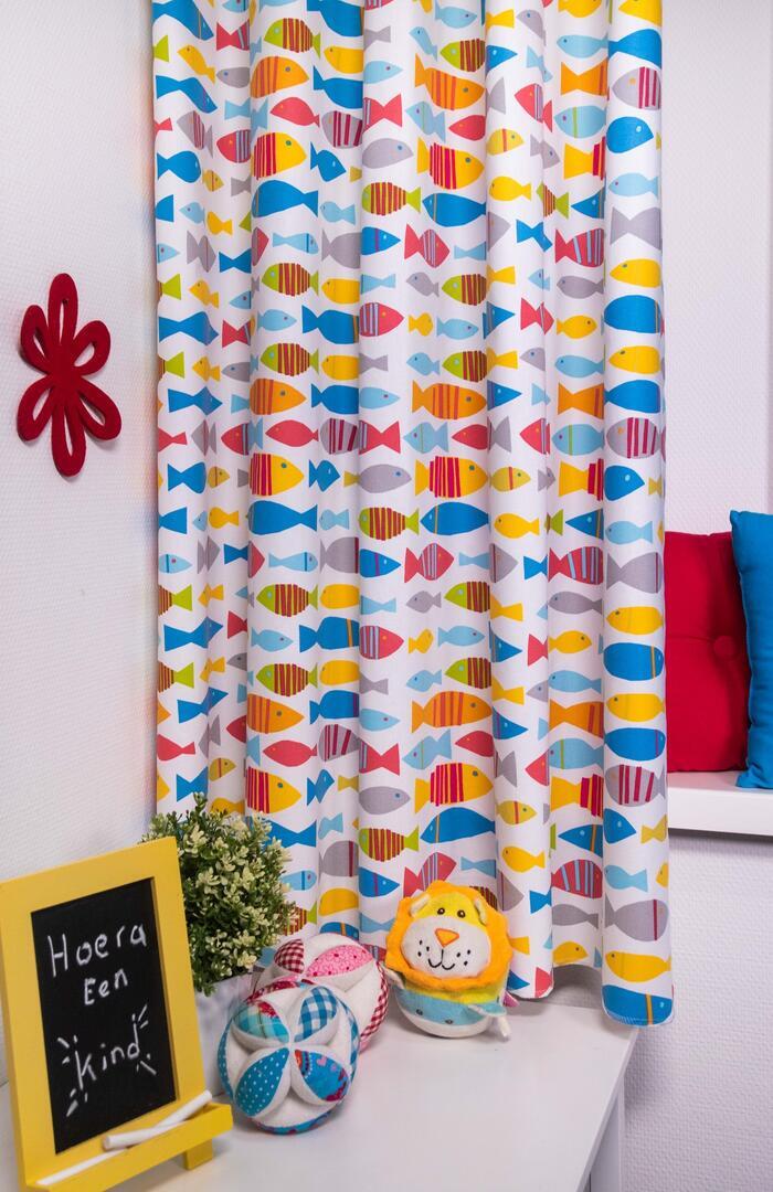 Op zoek naar een vrolijk en speels gordijn voor de kinderkamer? Ontdek FinnFish!š Gemaakt van dikke kwaliteitsstof, dit gordijn is bedrukt met schattige kleine visjes in levendige kleuren. Beschikbaar in drie prachtige kleurstellingen: Multicolor, ocean blue en butterscotch met een vleugje oranje. Perfect voor een baby- of peuterkamer! Personaliseer jouw gordijn met de optie "Voering" voor extra isolatie en verduistering. Heb je nog vragen? dan sta ik altijd voor je klaar!