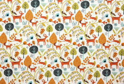 Stap binnen in een betoverende wereld met de adembenemende Scandi Woodland kindergordijnen. Deze 100% katoenen stof met Scandinavisch ontwerp brengt een magisch tafereel van bomen, bladeren en allerlei planten en dieren naar uw kinderkamer. De gordijnen zijn verkrijgbaar in drie levendige kleurstellingen: oranje, okergeel en petrol. Kies de kleur die het beste past bij de stijl en persoonlijkheid van uw kinderen. De Scandi Woodland kindergordijnen zijn niet alleen prachtig, maar ook gemaakt van zware kwaliteit om jarenlang plezier te garanderen. Ze geven een levendige kleur aan het interieur en voegen een speels en vrolijk element toe de kinderkamer, deze gordijnen passen perfect en zullen overal een mooie toevoeging zijn.