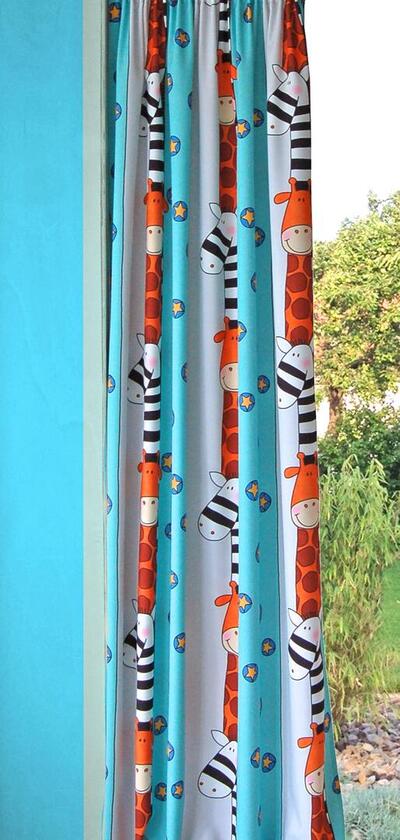 Met deze aandoenlijke kindergordijnen creëert u direct een knusse sfeer in de kinderkamer. De gordijnen met vrolijk blozende giraffes en zebra’s, zijn verkrijgbaar in meerdere bonte kleurencombinaties en passen daarmee in elke kinderkamer. Bovendien zijn ze semi verduisterend.