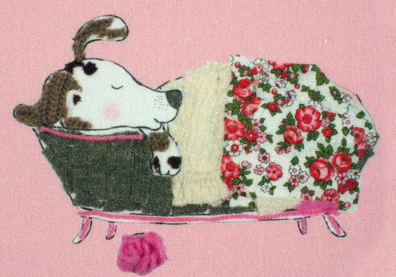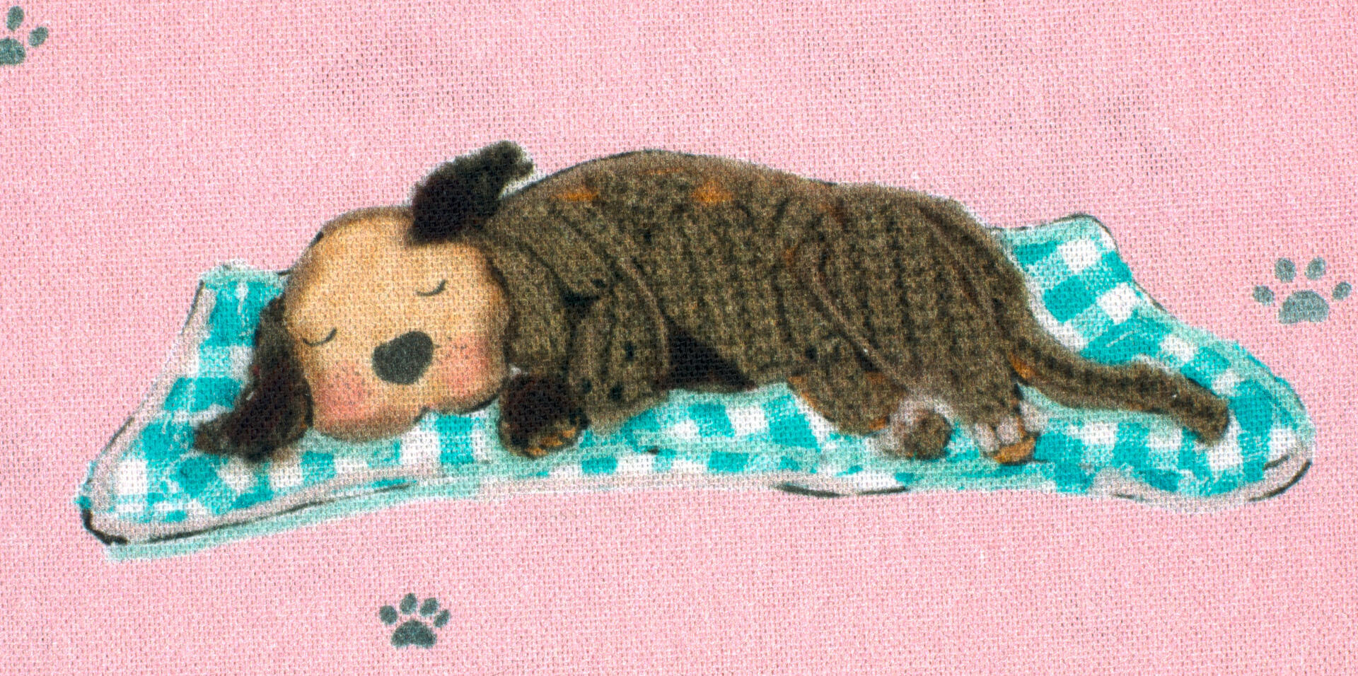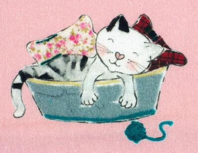 Een súper schattig gordijn voor de kinderkamer, ontworpen door Hanneke de Jager. Deze beeldend kunstenares is schrijver en tevens illustrator van een aantal bijzonder leuke kinderboeken. Zij omschrijft haar stijl als: fris, kleurrijk, levendig, speels en zonnig.Door gebruik van verschillende materialen zoals stofjes van de markt, knopen en gebreide truien, geeft zij haar illustraties iets unieks. In het patroon zie je namelijk de weergave van die leuke details van de verschillende texturen. Zo heeft het slapende hondje een optisch stukje schipperstrui en zijn elegante poezenvriendje een rozenstofje op de sofa.