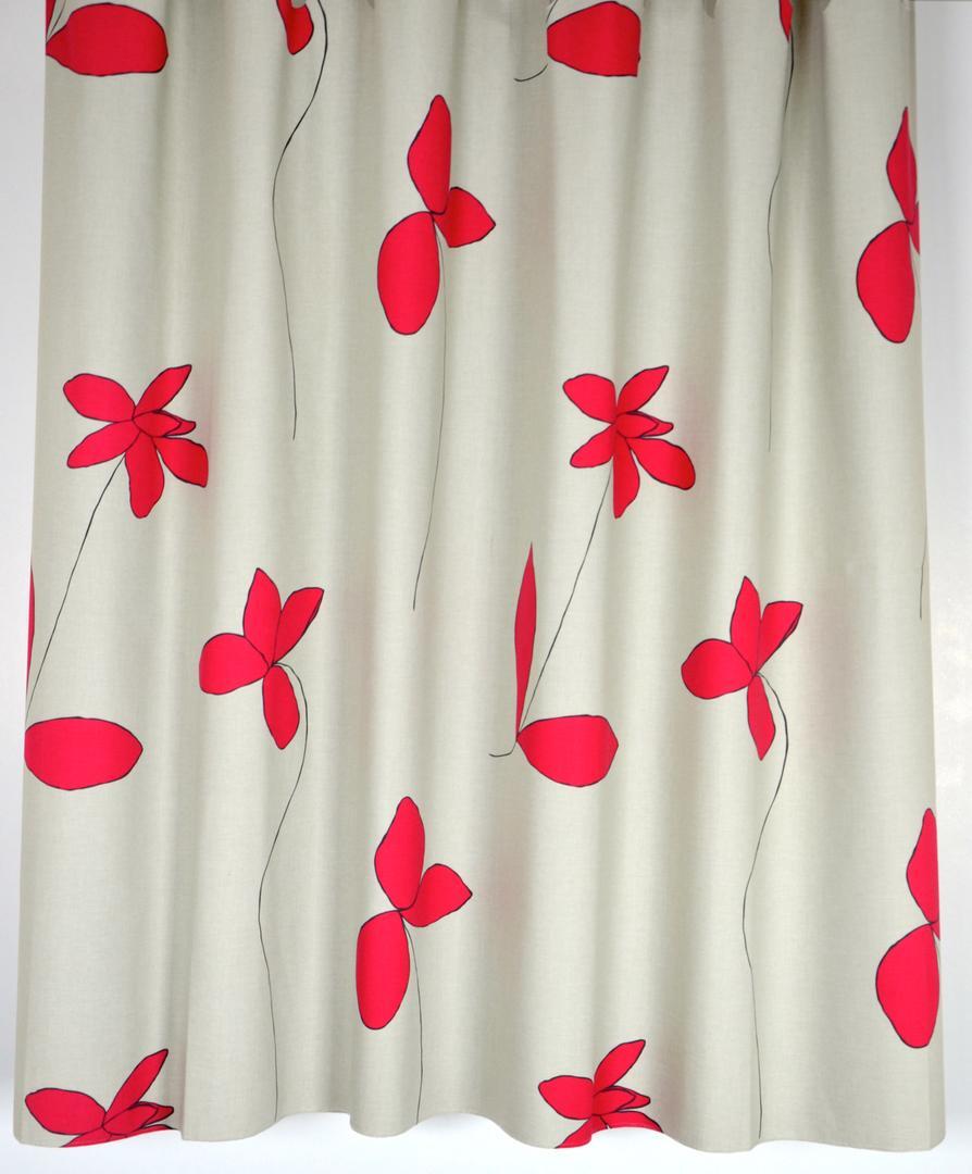 Het gordijn Drawn Flowers is een prachtig kinder/tienergordijn met zijn soepele stof en subtiel getekende lang gesteelde bloemen die lijken te zweven in de lucht. De stof is verkrijgbaar in drie kleuruitvoeringen. Een daarvan is zandgrijs met rode bloemen, zoals te zien is op de sfeerfoto. Daarnaast heb je de optie om te kiezen voor een ecru variant met witte bloemetjes of een antraciet variant met grijze bloemen. Deze gordijnstof geeft een sfeervolle en charmante uitstraling in je woning. De subtiel getekende bloemen voegen een vleugje natuurlijke schoonheid toe, terwijl de kleurkeuzes zorgen voor verschillende mogelijkheden om de stof af te stemmen op jouw interieur.