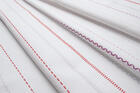 De tweede uitvoering heeft een rustiger en iets krachtiger kleurenpalet van helder rood, diep bordeaux en zacht grijs. De rode en bordeaux strepen geven het gordijn warmte en diepte, terwijl de grijze lijnen voor balans zorgen. Ook hier ligt alles op een lichte ondergrond, waardoor het geheel niet zwaar wordt.