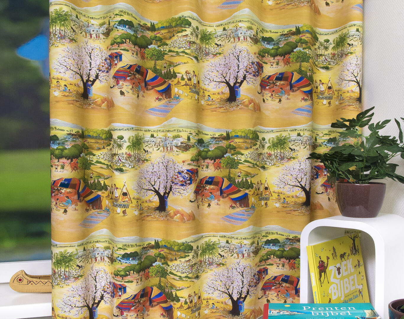 Marijke werkt al twintig jaar illustrator voor verschillende bekende uitgevers. De stoffen die uniek ontworpen zijn voor kindergordijnen zijn gebaseerd op de prentenbijbel, die door kinderen van over de hele wereld gewaardeerd wordt. Hij verscheen inmiddels al in 16 landen. Dat er na prentenboeken, kartonboekjes, puzzels en spellen nu ook stoffen zijn ontworpen bij deze bijbel is uniek. Marijke haar kleurrijke levendige stijl spreekt jonge kinderen erg aan. De personages lijken te leven en nemen je mee in hun wereld vol verhalen.