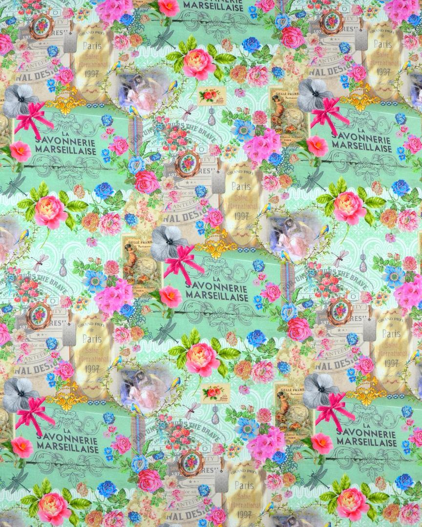 Wegdromen door nostalgie en romantiek, wie wil dat nu niet? De rozen boeketten op het zachte katoen en poederig pastel kleuren geven dat broccante effect. In de huidige woonsfeer mag je dat combineren met stippen, strepen en natuurlijk kant en borduursels! Voor een vleugje extra nostalgie speel je met woonaccessoires uit grootmoeders tijd en leg je geurige zeepjes op de plank. Voor het verduisterende effect even voeren.