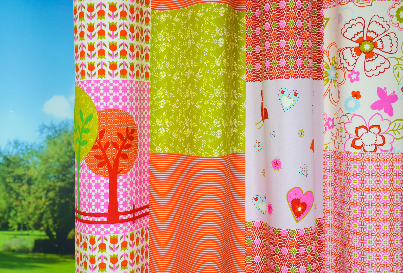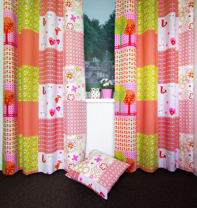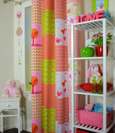 Vrolijk en lief tegelijk. Frisse patchwork print, gedrukt op een fijne soepel vallende katoenen structuurstof. De print is aan de achterzijde licht zichtbaar. Ook heel leuk voor toepassing in een kinderkamer] Te combineren met gordijnstof Mila met een bloemprint of de Tob met klein motiefje uit dit patchworkdessin. Designed by Cozz.