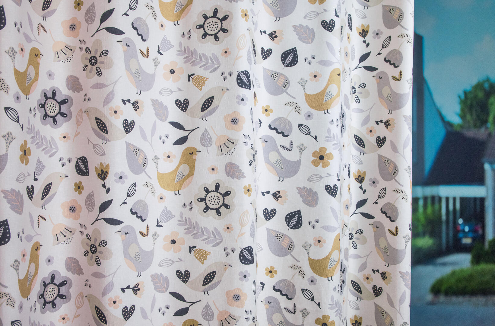 Het baby- en kindergordijn Mees is werkelijk een prachtstuk met zijn vrolijke en eigentijdse Scandinavische motieven. De vogeltjes, elk 10 cm groot, en de bloemetjes die variëren van 4 tot 6 cm zorgen voor een speelse en levendige uitstraling. Gemaakt van dicht geweven katoen, kan dit gordijn worden gevoerd voor extra isolatie en verduistering, wat een wereld van verschil maakt, vooral tijdens rustige nachten. Met dit gordijn tover je de kamer van je kleintje om tot een gezellige en knusse plek 💤