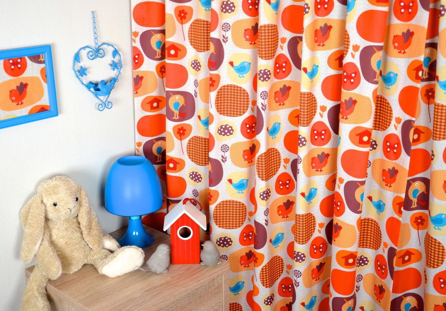 Tweet, tweet zegt Birdie, “Hoe gaat het met jou?” Een knus gordijn met die héérlijke nostalgische uitstraling. Leverbaar in 3 sprankelende kleurthema’s, geschikt voor jongens- en meisjeskamers. De ovalen zijn zo’n 5 tot 9 cm groot en gedrukt op een licht aangekleurde ondergrond. Dat geeft de stof nog meer RETRO effect. Voor extra verduistering kan je het gordijn laten voeren.
