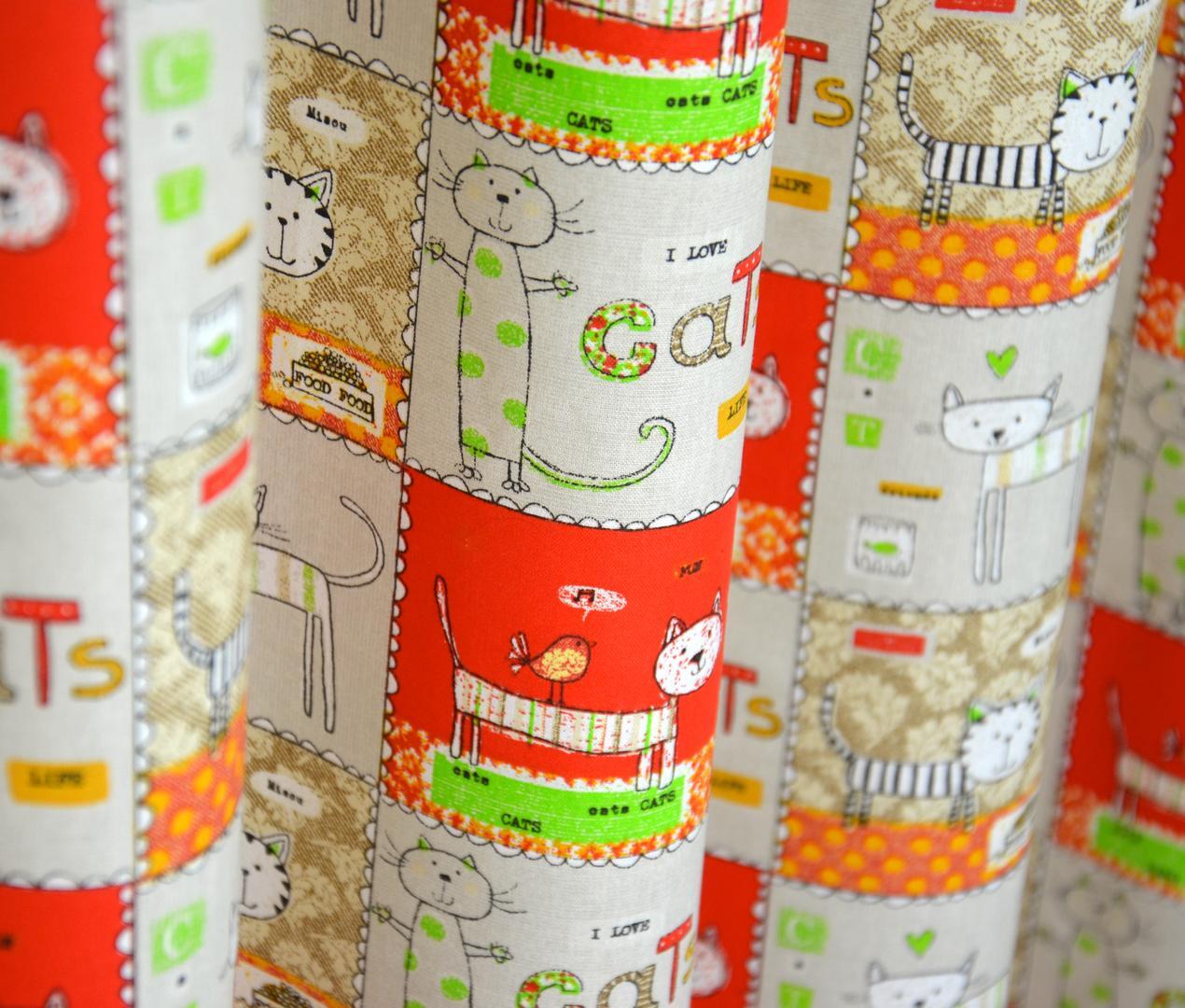 Kleuurijk patchwork gordijn met katten in alle mogelijke soorten en maten. Het Minette gordijn is een vrolijke toevoeging aan de kinderkamer en maakt het er direct gezellig.