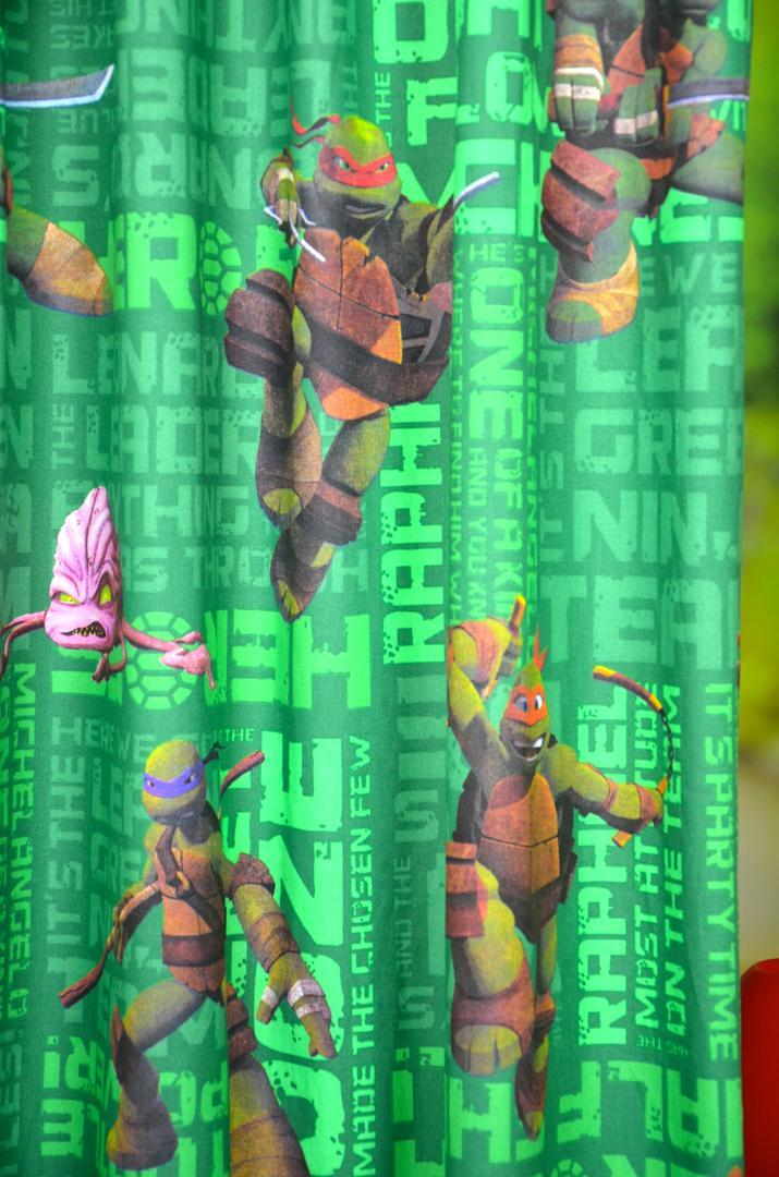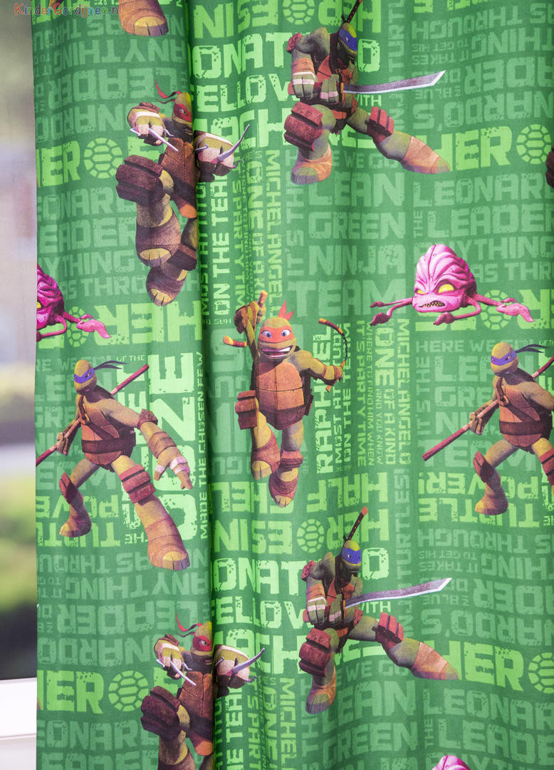 Typisch jongensgordijn voor de allerstoersten! Met deze Nina Turtles op de gordijnen is het nooit meer saai in de kinderkamer. Wilt u bijpassende kussens? Dat kan! Vink de optie aan in het bestelproces.