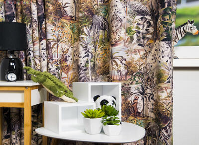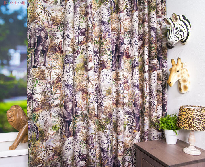 geconfectioneerd zodat het jungle en safari patroon van 104 cm mooi doorloopt.