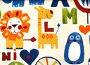 ✔De eerste kleuruitvoering combineert diepblauw, frisgroen, warm geel en oranje op een zachte roomwitte achtergrond met een licht geweven textuur, waardoor de dieren helder afsteken maar het geheel toch rustig blijft ogen.