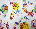 Prachtige uitvoering van een exotisch kindergordijn. Maak een kleurrijk circus van de kinderkamer met deze schitterende gordijnstof vol vogels, lampionnen, bloemen en meisjes. Verkrijgbaar in twee verschillende uitvoeringen.