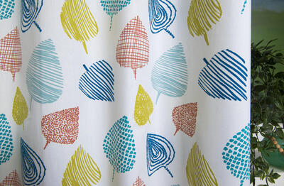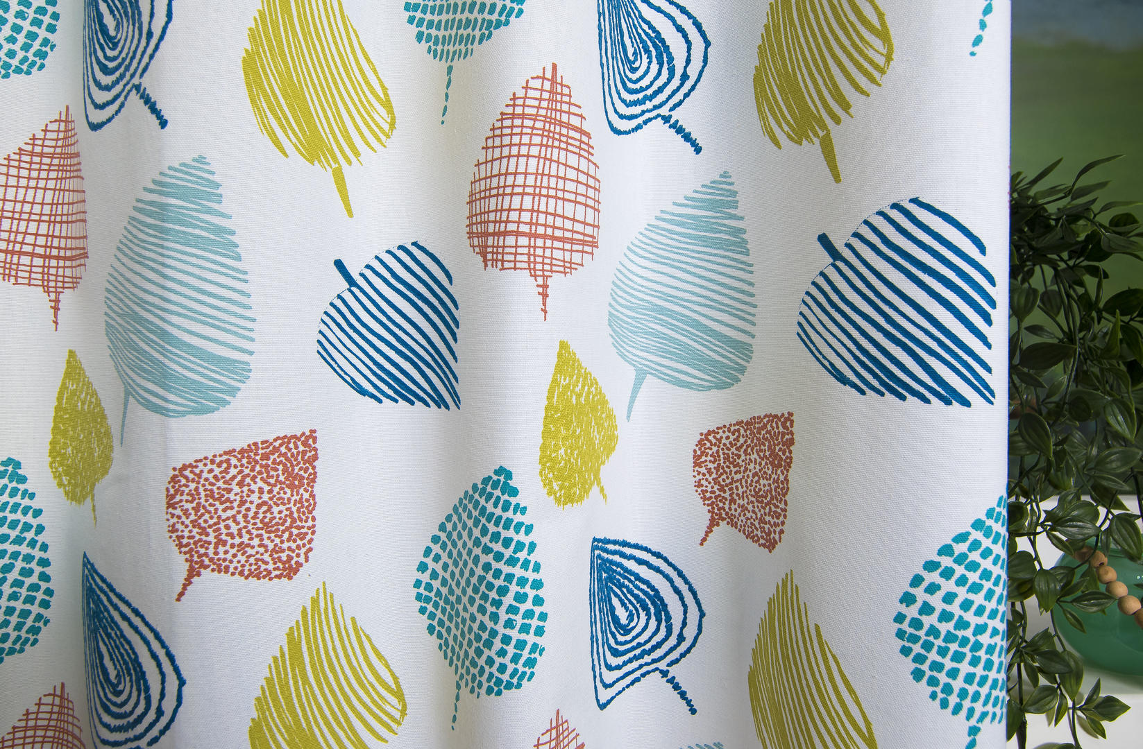 De blaadjes zijn in verschillende kleursamenstellingen op de mat witte en dikke gordijnstof aangebracht. Tip van ons: Bestel eerst een knipstaal/sample, zo weet je precies met welke kleur en kwaliteit jouw gordijnen worden gemaakt.