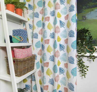Blaadjes! Dit rustige en supermooie kindergordijn heeft ze op een prachtige wijze alsof ze zijn geborduurd.