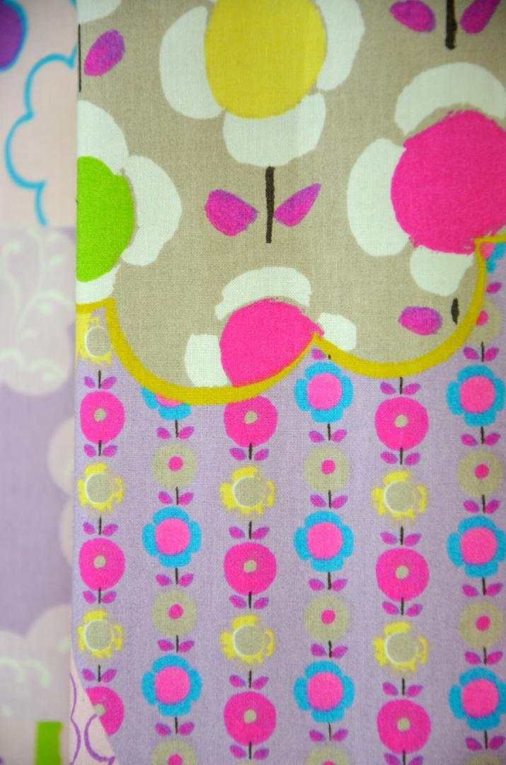 De kleuren zijn licht, vrolijk en zacht tegelijk. De basis bestaat uit pastelachtige tinten zoals lila, lichtroze, zacht paars en crème. Daarin zijn frisse accenten verwerkt in turquoise, zacht blauw, geel en lichtgroen. De bloemen en cirkels brengen extra diepte door het gebruik van meerdere tinten binnen één vorm. Deze combinatie maakt het gordijn geschikt voor zowel een babykamer als een meisjeskamer waarin warmte en kleur gewenst zijn.
