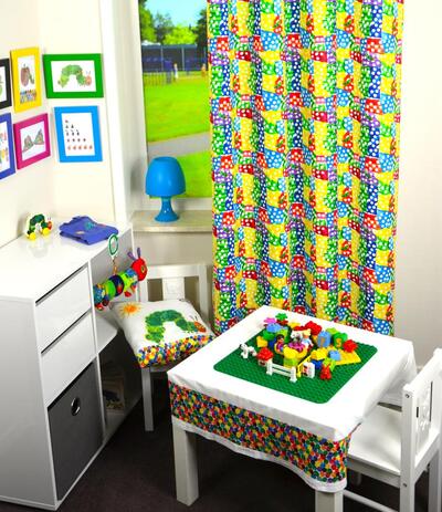 Kindergordijnen.nl levert nu ook prachtige kindergordijnen met Rupsje Nooitgenoeg! De kleine rups heeft altijd maar honger en verandert uiteindelijk in een prachtige vlinder. Zijn uw (klein)kinderen gek op dit verhaal? Verras ze dan met dit vrolijke gordijn voor de kinderkamer!