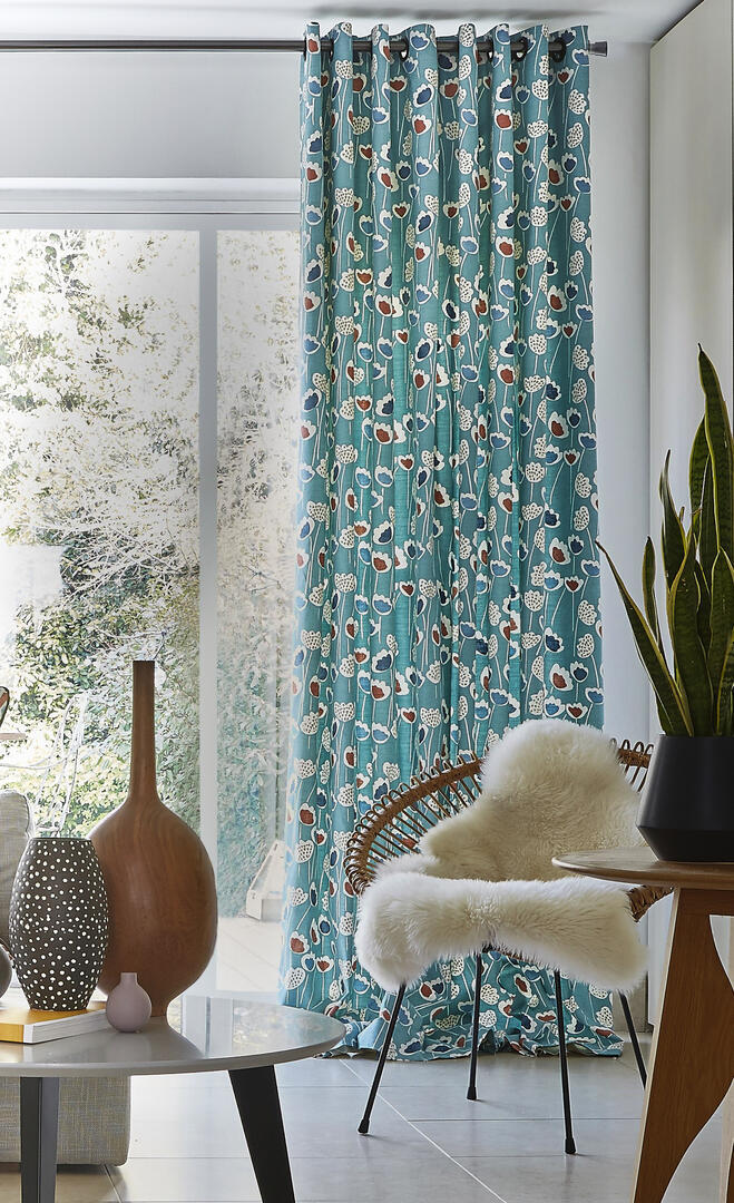 Door het patroon is de stof zeer geschikt voor grotere raamoppervlaktes. De stof is van 100% katoen en ietwat ruw geweven.