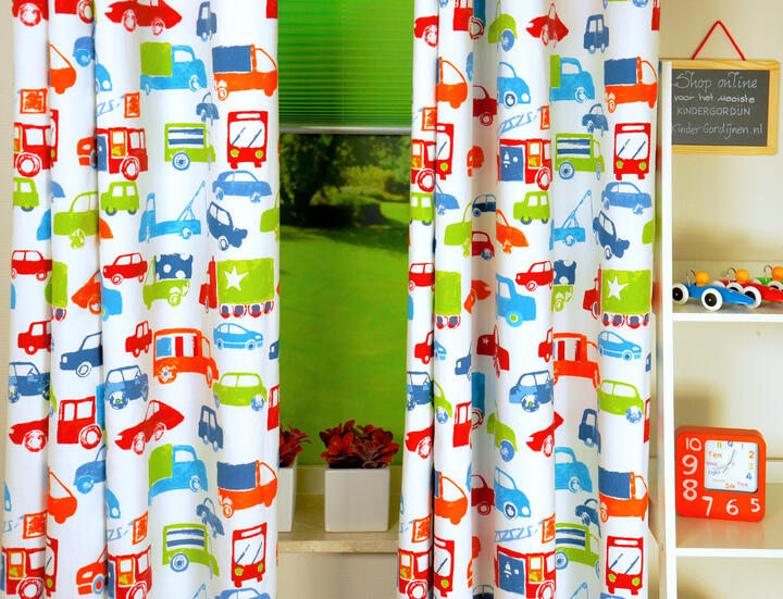 Jongensgordijn met het geliefde autothema op een stijlvolle manier uitgevoerd. De autootjes zijn gedrukt in ietwat verpoederde tinten op fraaie, matte en dicht geweven katoen. De stof is leverbaar in 4 verschillende kleurcombinaties, van vrolijk tot rustig & tijdloos. De klassieke raceauto is hier b.v.16 x 7 cm groot. Auto’s en oldtimers vervelen nooit! Voor extra verduistering graag even laten voeren.