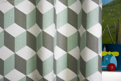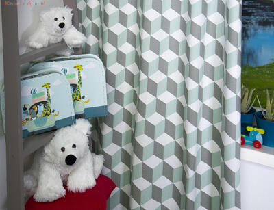 Cube Kindergordijn, dat is de naam van dit mooie gordijn. Het is een kindergordijn met allemaal vierkantjes (cubes) en het lijkt in de eeuwigheid door te gaan. Door de mooie kleuren van oranje en blauw en het rustige wit komt het kindergordijn helemaal tot leven. Het kindergordijn is gemaakt van 100% katoen hierdoor is het heerlijk soepel en zacht en kan je ook dit kindergordijn laten verduisteren zodat je in één keer klaar bent met het gordijn. Je kind kan nu heerlijk slapen in een donkere kamer. Maar als je het kindergordijn eerst wil zien en voelen dan bestel je een knipstaal en dan kun je het met eigen ogen zien. Dit is een tip van Jelmer! Hou jij ook zo van die wiskundige figuren?